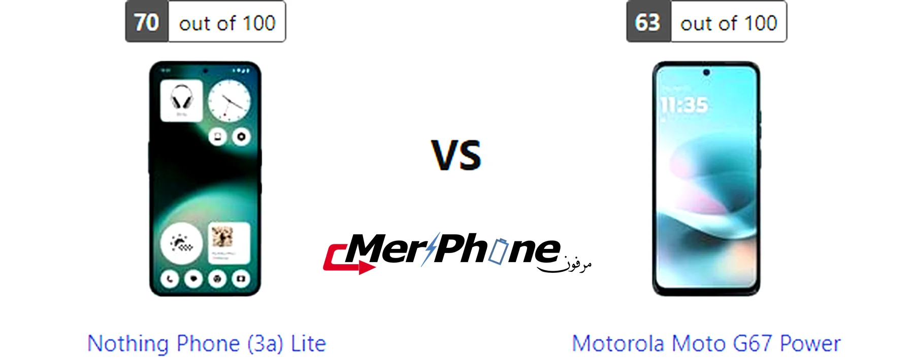مقارنة شاملة: Nothing Phone (3a) Lite ضد Motorola Moto G67 Power
