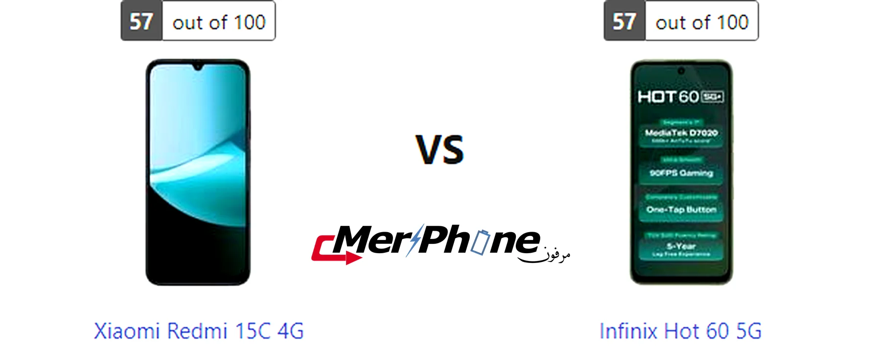 مقارنة هاتف: Xiaomi Redmi 15C 4G ضد Infinix Hot 60 5G