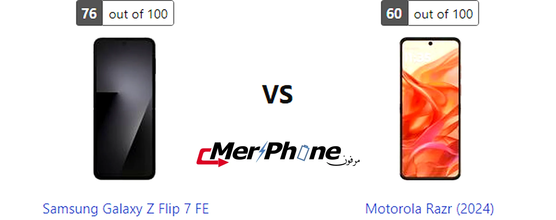 مقارنة هاتف: Samsung Galaxy Z Flip 7 FE ضد Motorola Razr (2024)