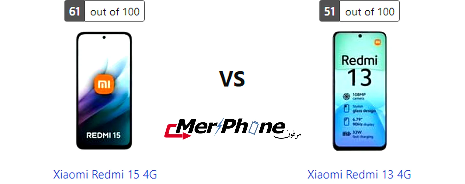 مقارنة هاتف: Xiaomi Redmi 15 4G ضد Xiaomi Redmi 13 4G