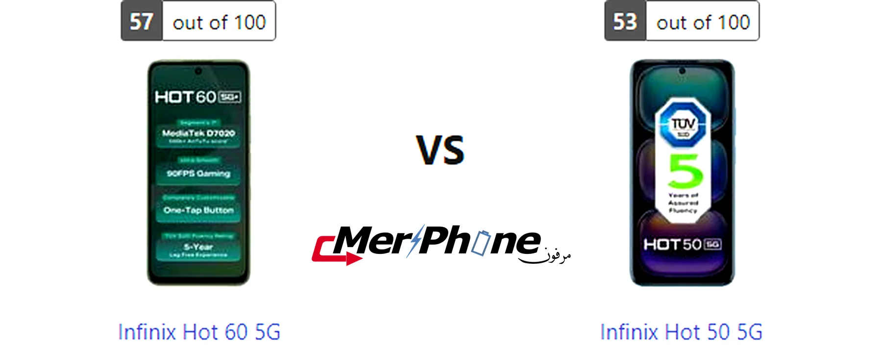 مقارنة شاملة: Infinix Hot 60 5G ضد Infinix Hot 50 5G