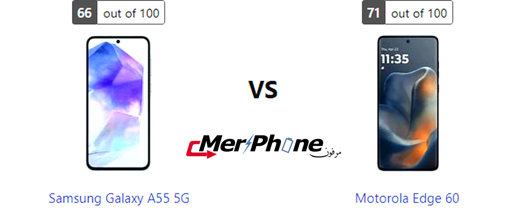 مقارنة هاتف: Samsung Galaxy A55 5G ضد Motorola Edge 60